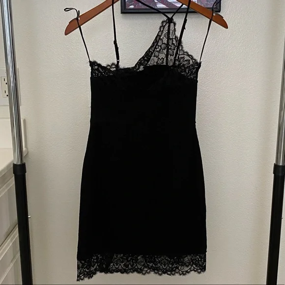 Free People Dresses Free People Premonitions Black Lace Oneshoulder Bodycon Slip Dress Size Xs Poshmark